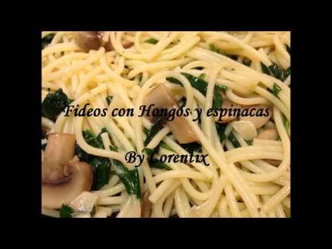Fideos con espinaca y hongos, Noodles, spinach, mushrooms, butter, garlic